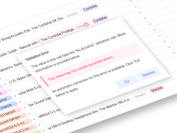 Tired of scanning your spreadsheet for errors or setting up complex validation formulas? Tablomat has customizable and easy-to-use validation that can spot incorrect values and offer to fix them all for you.